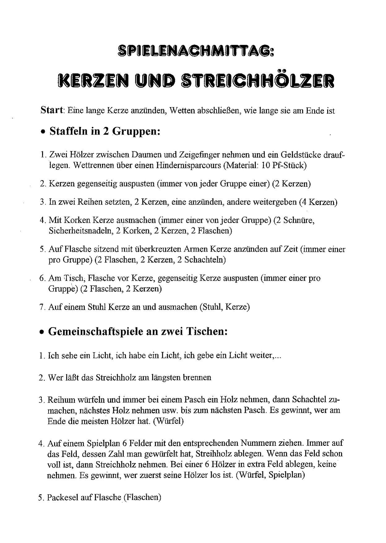 = SPIELENACHMITTAG: KERZEN UND STREICHHÖlZER = | = SPIELENACHMITTAG: KERZEN UND STREICHHÖlZER = | ||