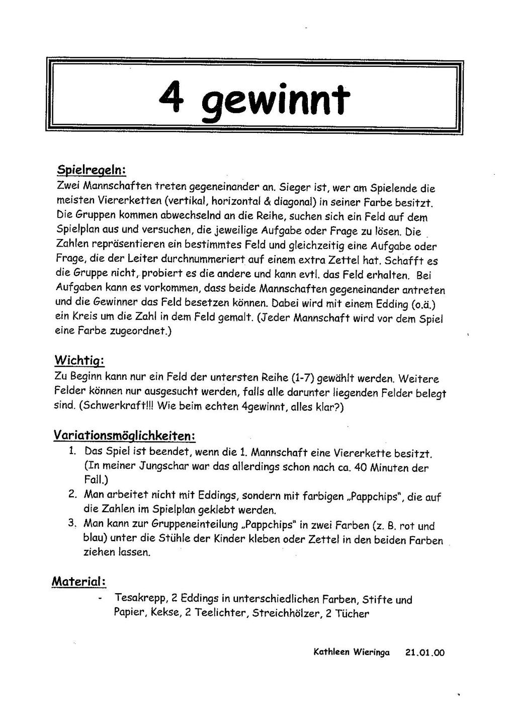 Viererkette besitzt. (In meiner Jungschar war das allerdings schon nach ca. 40